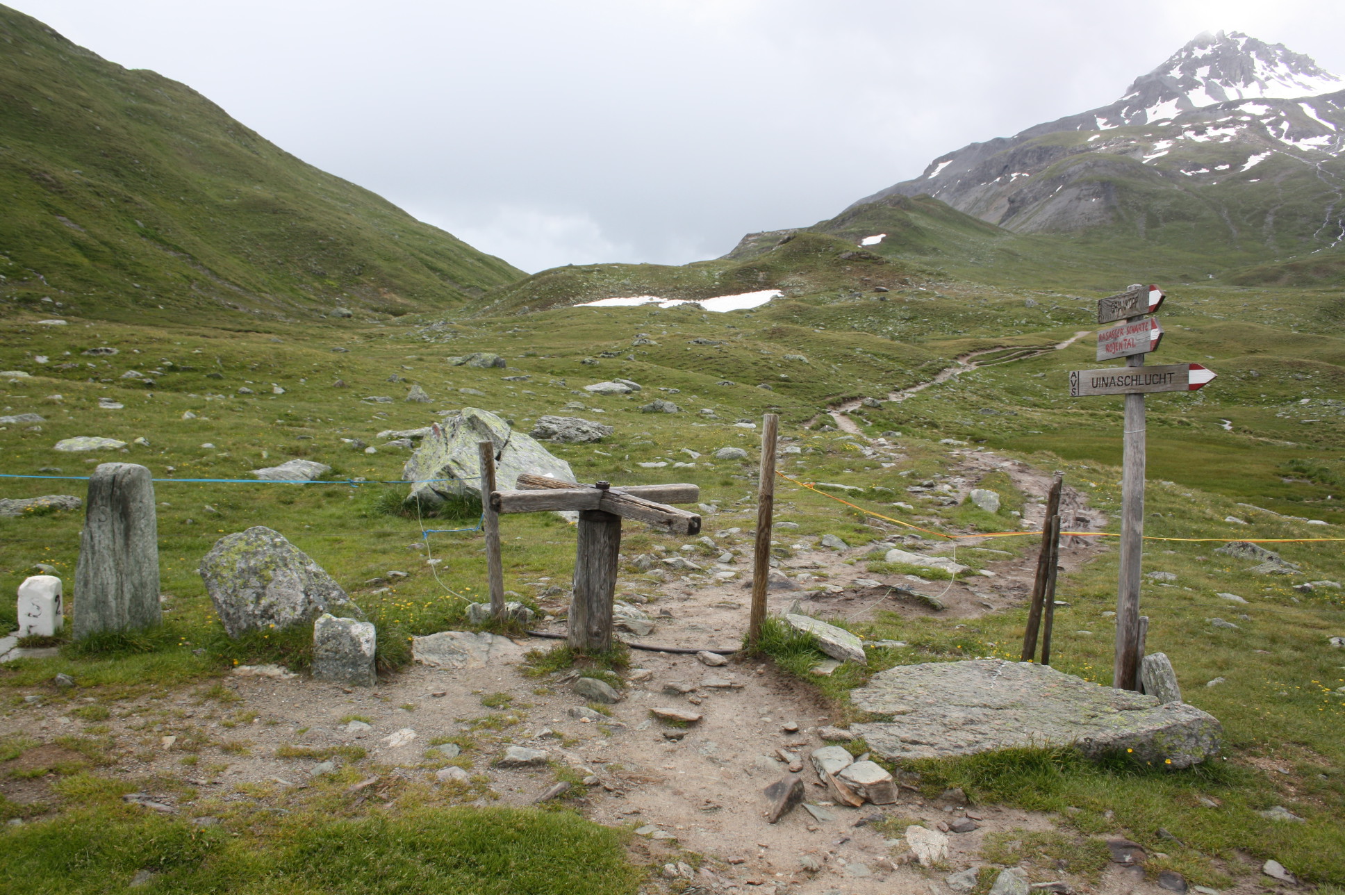 Grenzübergang zwischen der Schweiz und Italien. Links neben dem Drehkreuz befinden sich die Grenzsteine.